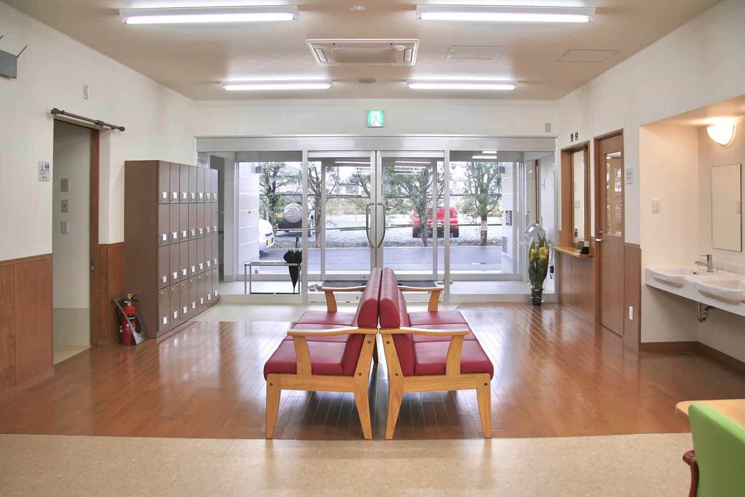 熊本市郊外(楠野町)に似合うモダンな2階建ての建物で、オール電化や充実したセキュリティーが導入され、ご利用者様の安全面を最優先に考えたグループホームです。