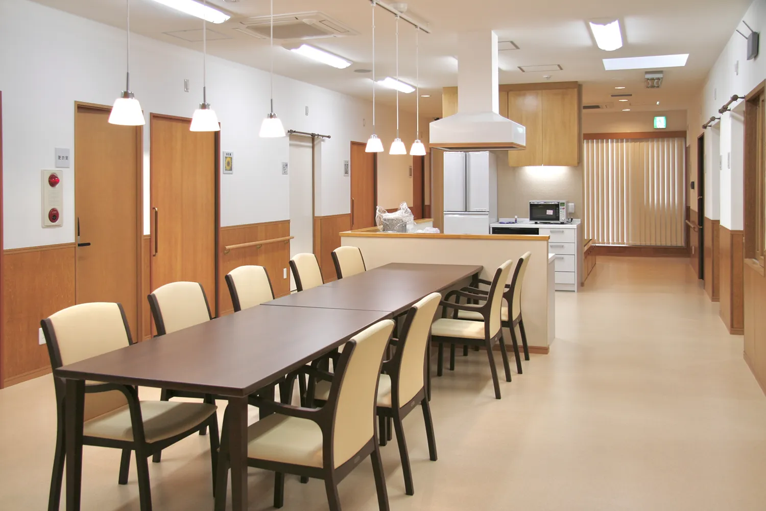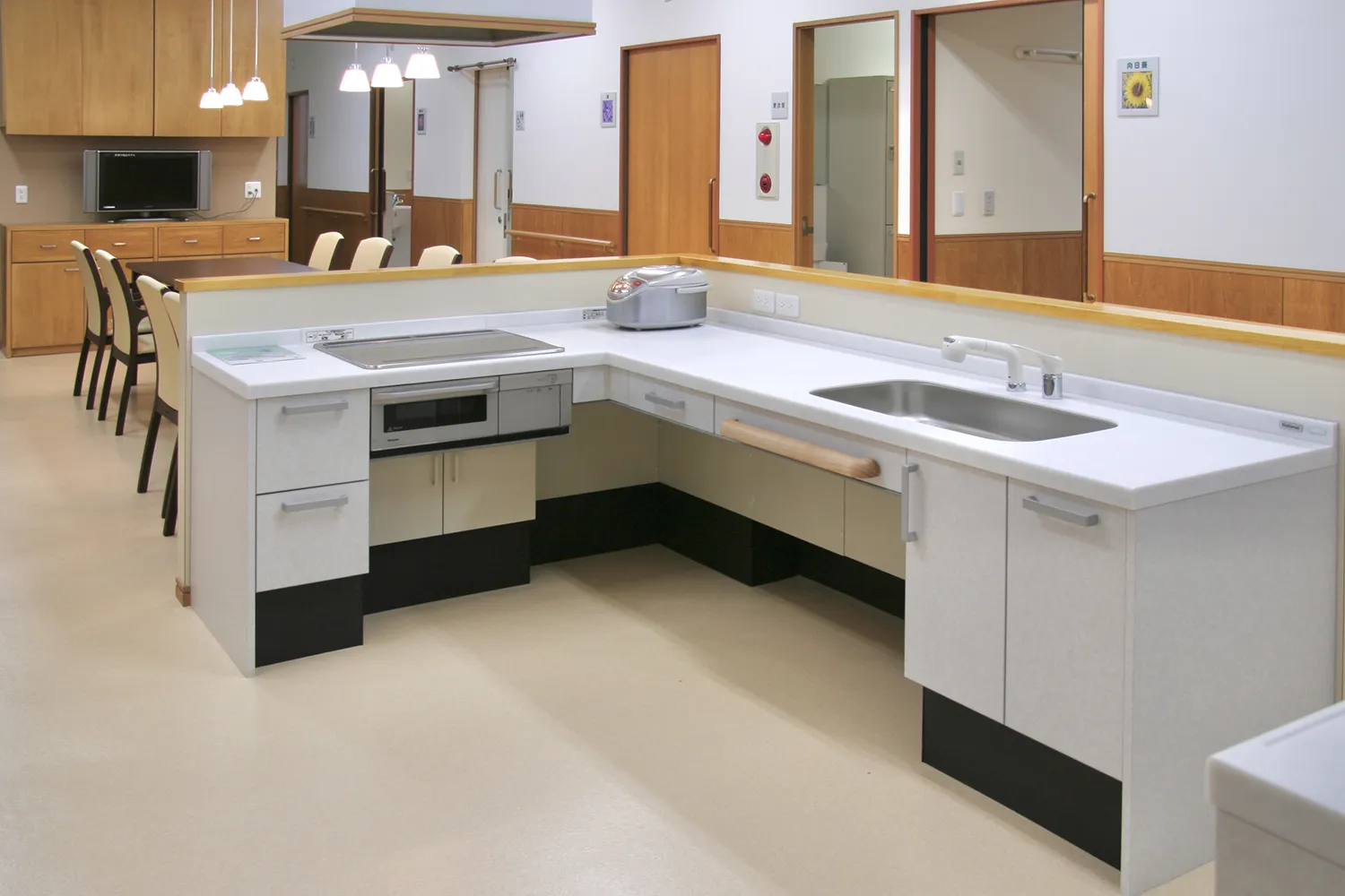 調理や清掃の専門スタッフも配置され、介護職員は余裕のあるケアを提供いたします。